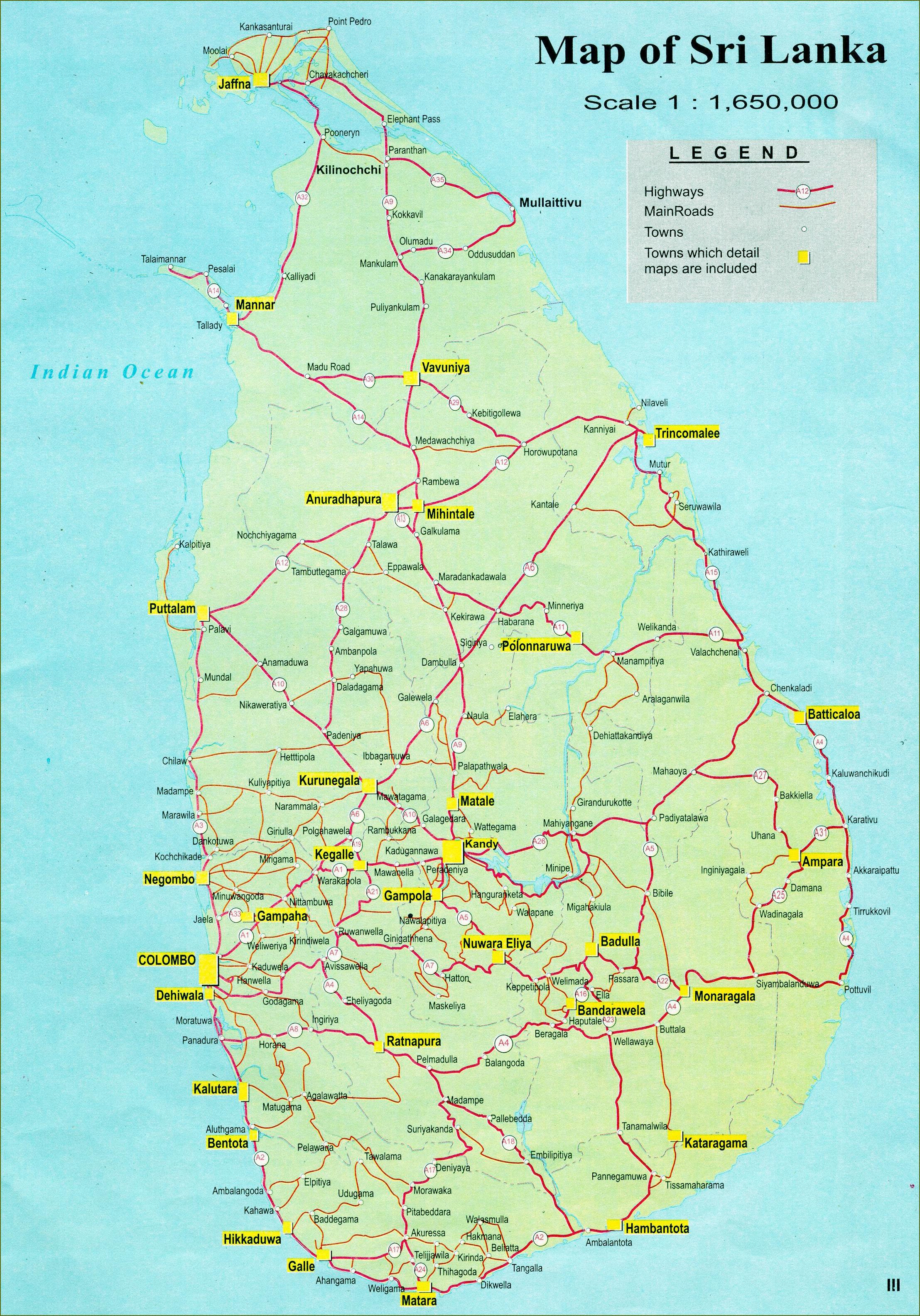 Sri Lanka rodovia mapa rodoviário. Sri Lanka mapa de rota (Sul da Ásia Ásia) para imprimir. Sri Lanka mapa de rota (Sul da Ásia Ásia) para download.